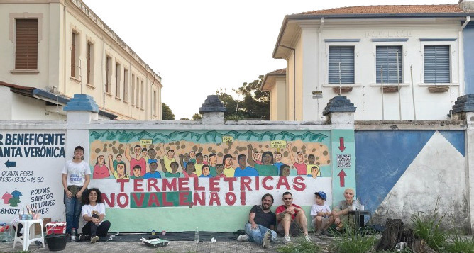 Um mural coletivo foi pintado na Avenida Marechal Deodoro da Fonseca nesta semana, em Taubaté, manifestando oposição à instalação de termelétricas na região. A atividade foi conduzida pelo professor e artista plástico Aron Pereira, em muro cedido pelo Lar Escola Santa Verônica. De caráter artístico e de protesto, a obra soma-se às mobilizações de diversos setores da sociedade contra o projeto da Usina Termelétrica São Paulo (UTE São Paulo), planejado para Caçapava. Ao lado da obra, um QR Code direciona para uma plataforma com diversos materiais informativos sobre os riscos das termelétricas na região, incluindo estudos técnicos, manifestos e formas de engajamento.