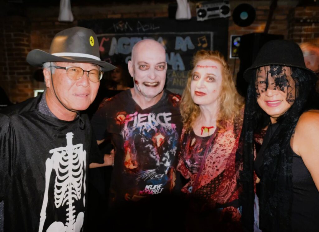 No sábado o trepidante Bar Trem Azul comemorou a Festa de Halloween pilotada pela expert Mercedes Conceição e com discotecagem PRIME do DJ Paulo Duran, com os melhores hits dos anos 80 & 90. Uma noite animadíssima, linda, o TREM estava mais para “Trem Fantasma”, decorado de ponta a ponta. Festa de primeira, de público & animação com fantasias criativas e de muito bom gosto.
